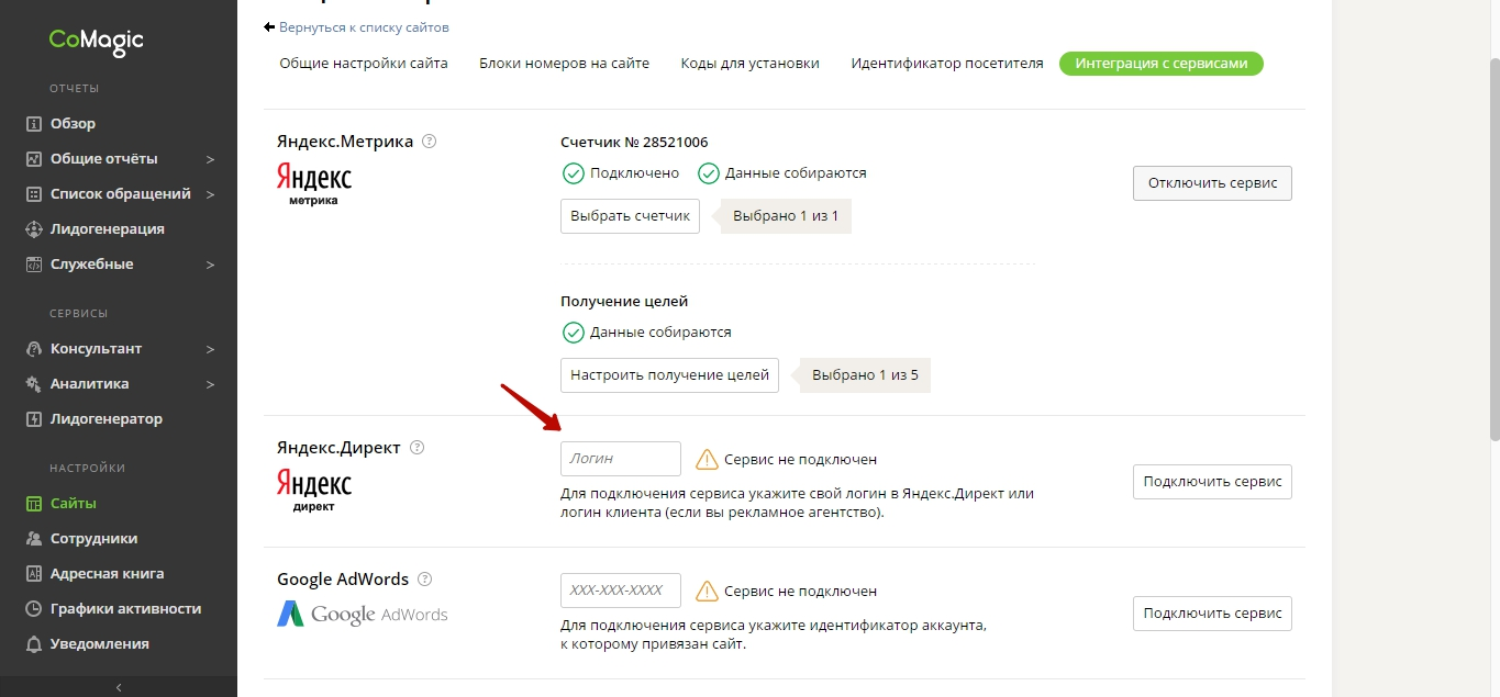 Інтеграція CoMagic з Яндекс.Директ
