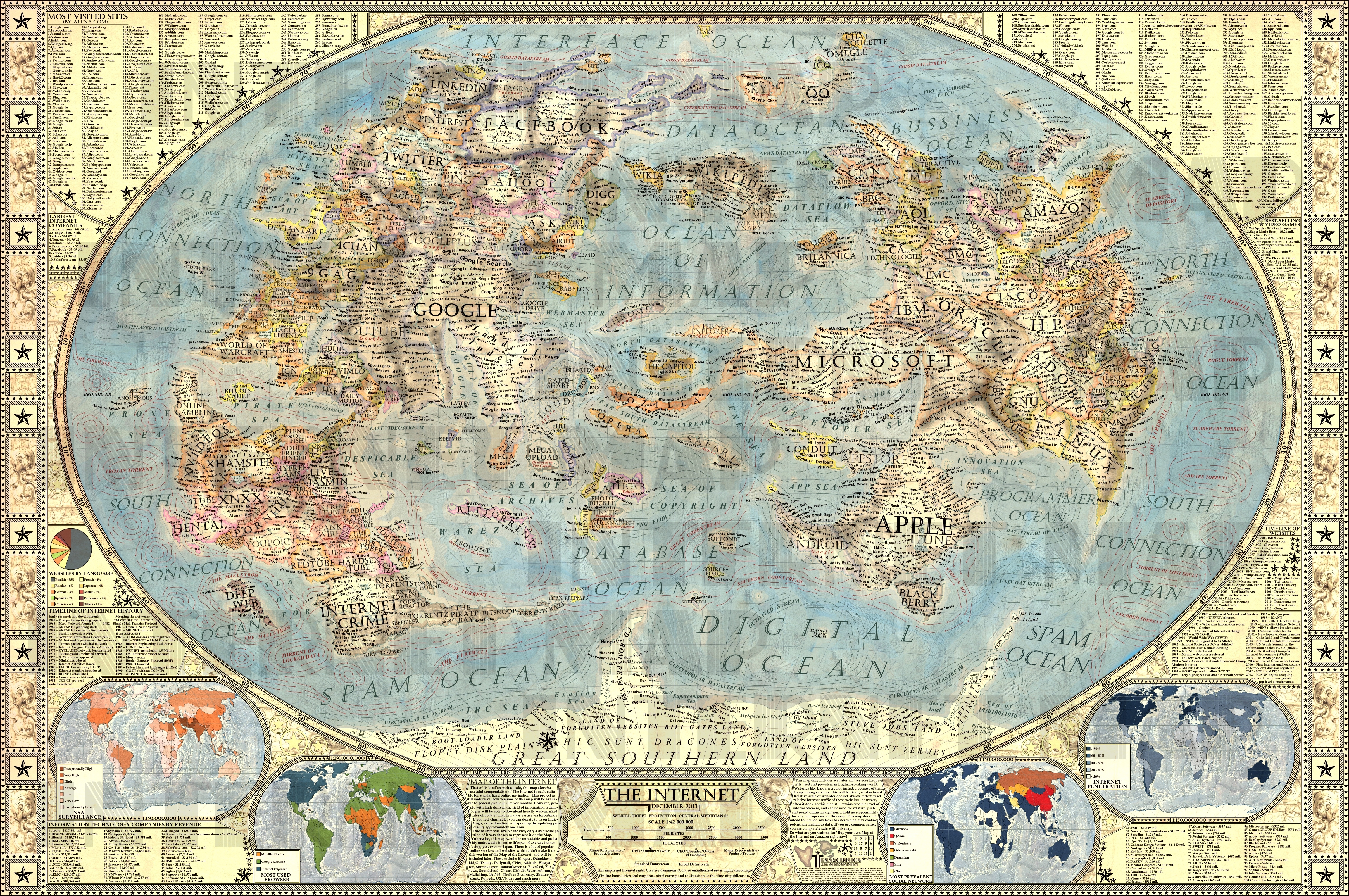 Також на полях є кілька допоміжних карт (уже цілком реальних) і чимало текстової інформації про найпопулярніші сайтах, основні віхи в історії Інтернету, найбільш впливових інтернет-компаніях, самих високотиражних комп'ютерних іграх і так далі.