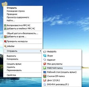 Тепер клацніть на будь-якому файлі або папці правою кнопкою миші і подивіться на меню команди «Відправити» - там з'явиться ярлик папки «Музика» (створити треба саме ярлик, оскільки створювати дублікат тієї ж папки «Музика» на диску «С» не має ніякого сенсу - функціональність та ж, тільки місце на диску буде витрачено неефективно).