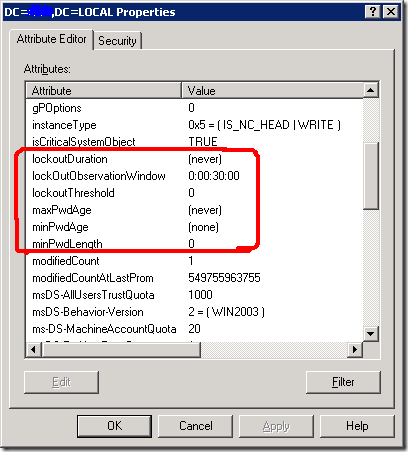 Тепер більш-менш зрозуміло: щоб змінити блокування облікових записів в домені ми повинні змінити ці атрибути. З даного висновку випливає