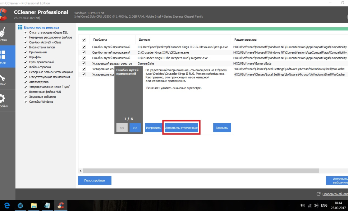 Перейдіть в розділ «Реєстр» - Натисніть «Пошук проблем».